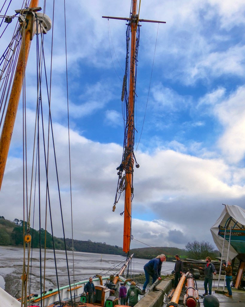Bessie Ellen new mast being lowered into place